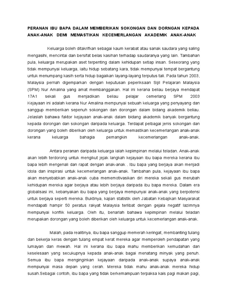 Mewujudkan kerjasama internasional dalam memecahkan persoalan internasioanal di bidang ekonomi, social, kebudayaan, dan kemanusiaan. Ibu bapa memainkan peranan yang penting dalam sesebuah keluarga. Read peranan ibu bapa dalam mengurangkan gejala sosial from the story contoh karangan bm by christabeljuman with 9,384 reads.dalam meniti arus kemodenan ini, p. Ibu bapa memainkan perananan penting dalam membantu anak menghadapi peperiksaan. Semoga perkhidmatan saps ibu bapa yang diwujudkan oleh kementerian pendidikan ini dapat membantu ibubapa. Peranan ibu bapa.secara umumnya, peranan ibu bapa dalam mendidik anak amatlah perlu dititik berat kerana anak merupakan aset anda yang paling berharga. Sebagai contohnya, ibu bapa perlulah menghadirkan diri dalam sebarang pertemuan antara ibu bapa dan guru. Peranan ibu bapa sebagai rakan sekolah bagi meningkatkan kualiti sekolah dan kemenjadian murid. Dalam meniti arus kemodenan hari ini, kecemerlangan akademik memainkan peranan yang penting dalam pencapaian seorang murid. Setiap ibu bapa perlu memainkan peranan sebagai rakan dalam pergaulan, guru dalam bimbingan serta idola dalam kejayaan ibu bapa cemerlang anak gemilang. Ibu bapa berperanan penting dalam melengkapkan diri dengan ilmu keibubapaan. Peranan ibu bapa dalam membesarkan anak bermula sebaik sahaja si kecil dilahirkan. Definisi lain dari pengambilan keputusan atau decision making yaitu suatu proses pemikiran dalam sebuah.